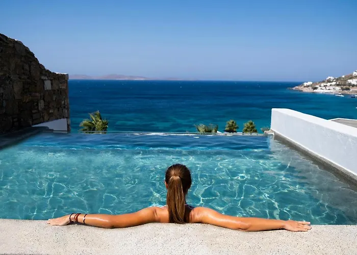 Amazon Mykonos Suites & Spa Agios Ioannis Diakoftis hotel met 56 kamers bevindt zich op 10 minuten met de auto weg van het Lena's Huis en op 3 km van het Maritiem Museum van Mykonos en heeft een archeologisch museum. Bij het 5-sterrenhotel kunt u van een kapsalon en een restaurant samen met een verwarmd zwembad profiteren.